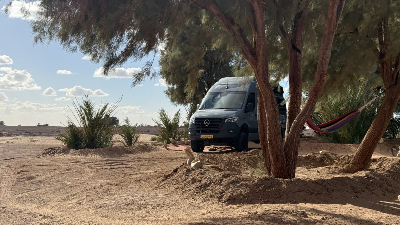 Een uit de hand gelopen hobby. Zo noemen we Ut & Thús soms met een knipoog. Begonnen vanuit onze eigen passie voor camperen, vinden we het belangrijk om zelf ervaring te hebben met wat we verkopen. Het afgelopen jaar hebben we een aantal 4×4 campers verkocht, maar echt off-road hadden we er zelf nog niet mee gereden. Dat was een extra reden om de reis door Marokko te maken met een Hymer Grand Canyon 4×4 / Mercedes Sprinter. Wat hoort er bij zo’n ervaringsreis? Natuurlijk door het zand van de Sahara (en erin vastzitten), over hobbelige gravelpaden en door spetterende waterplassen. Deze off-road ervaring kunnen we nu ook toevoegen aan ons lijstje. In Marokko kun je trouwens, net als op veel andere plekken, met een ‘gewone’ buscamper heel veel mooie routes maken. Met een 4×4 kun je nét even verder van de gebaande paden gaan.