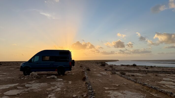 Deze zin uit onze Ut & Thús soundtrack past zeker bij onze camperreis door Marokko. Zoals een local tegen ons zei ‘door het weer is Marokko anders deze winter’. Door de regen, sneeuw en weeralarmen besloten we deze keer niet door het Atlas gebergte te rijden. Heel jammer (want fantastisch, weten we van onze camperreis 3 jaar geleden). In ruil daarvoor kozen we voor de weg langs het strand, helemaal van zuid naar noord. Die flexibiliteit, ook dát is een voordeel van reizen met de camper.