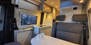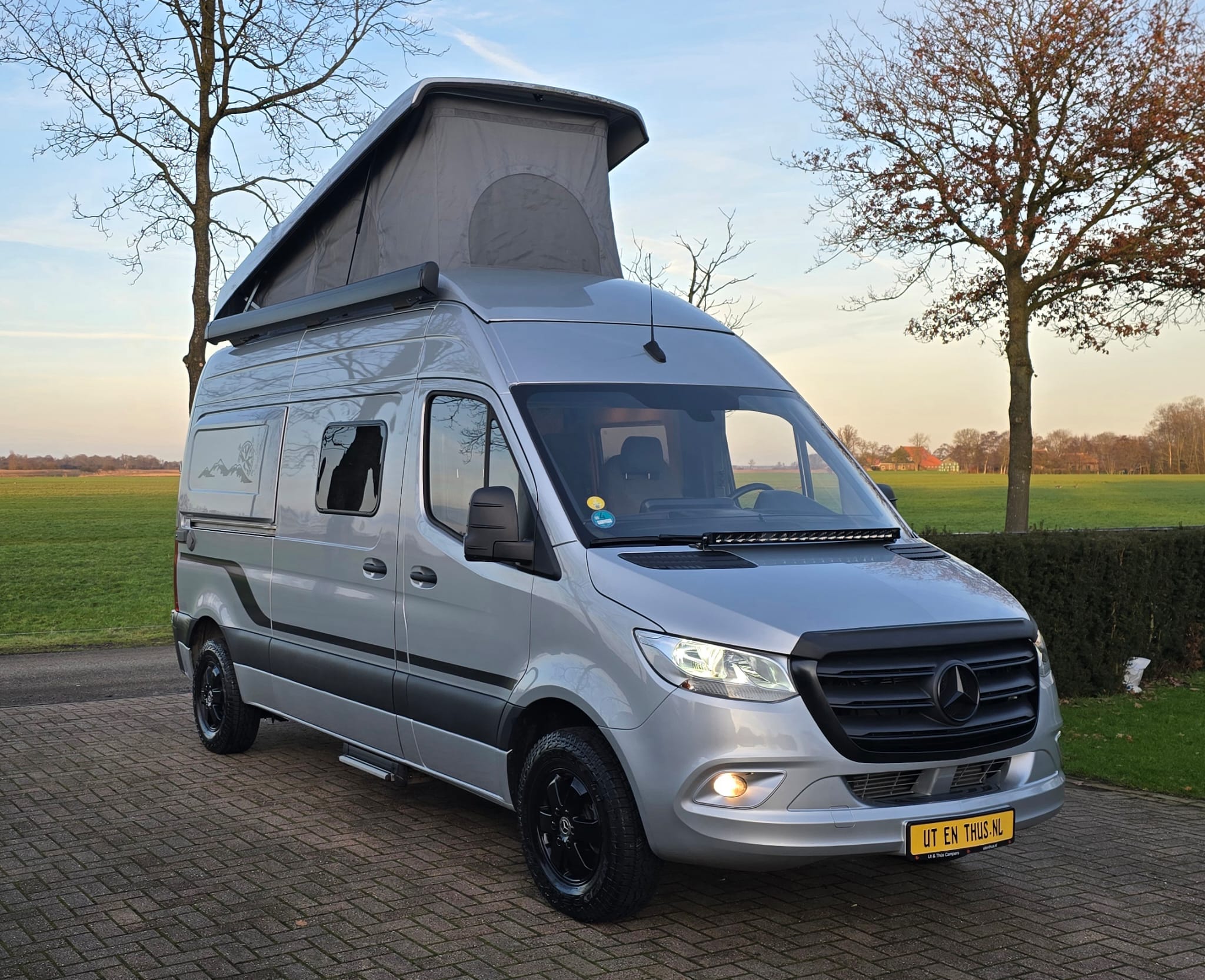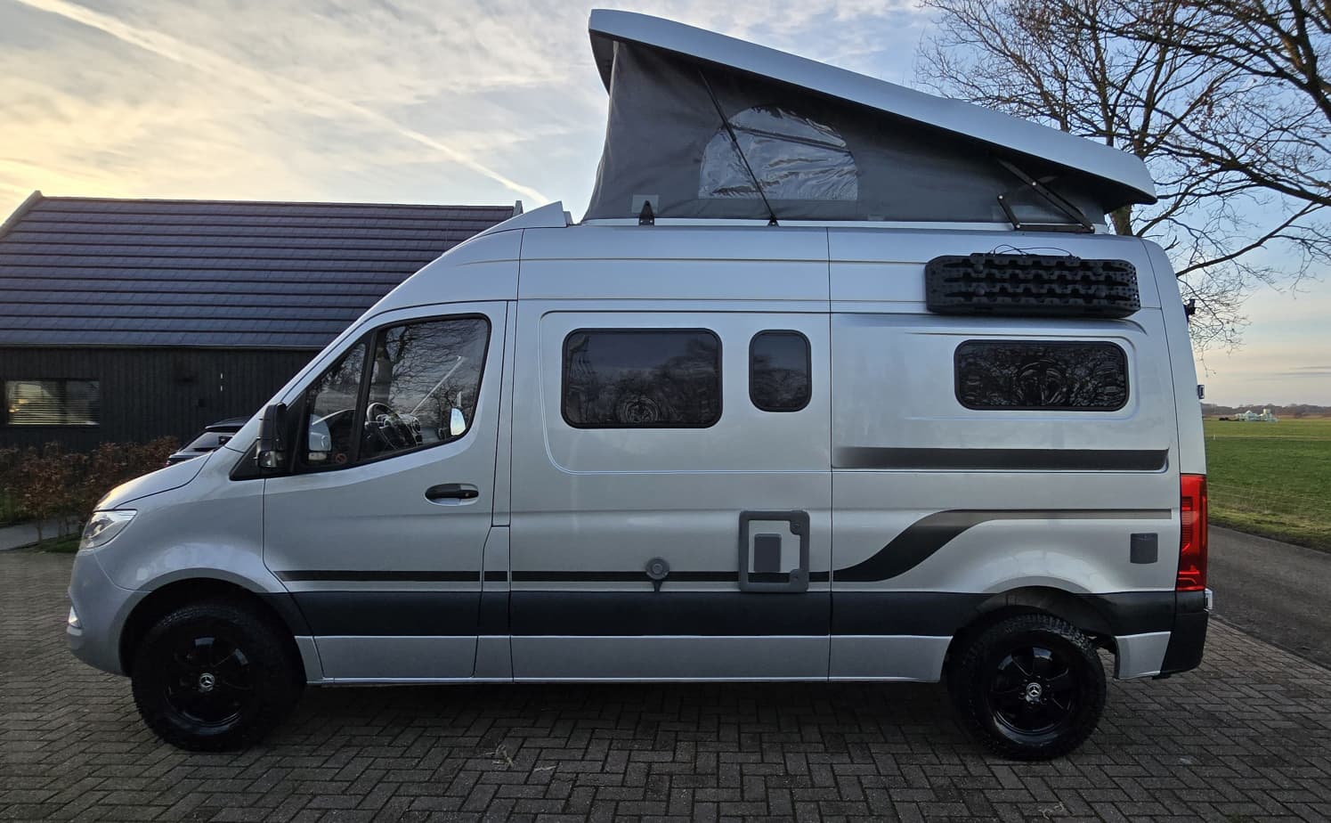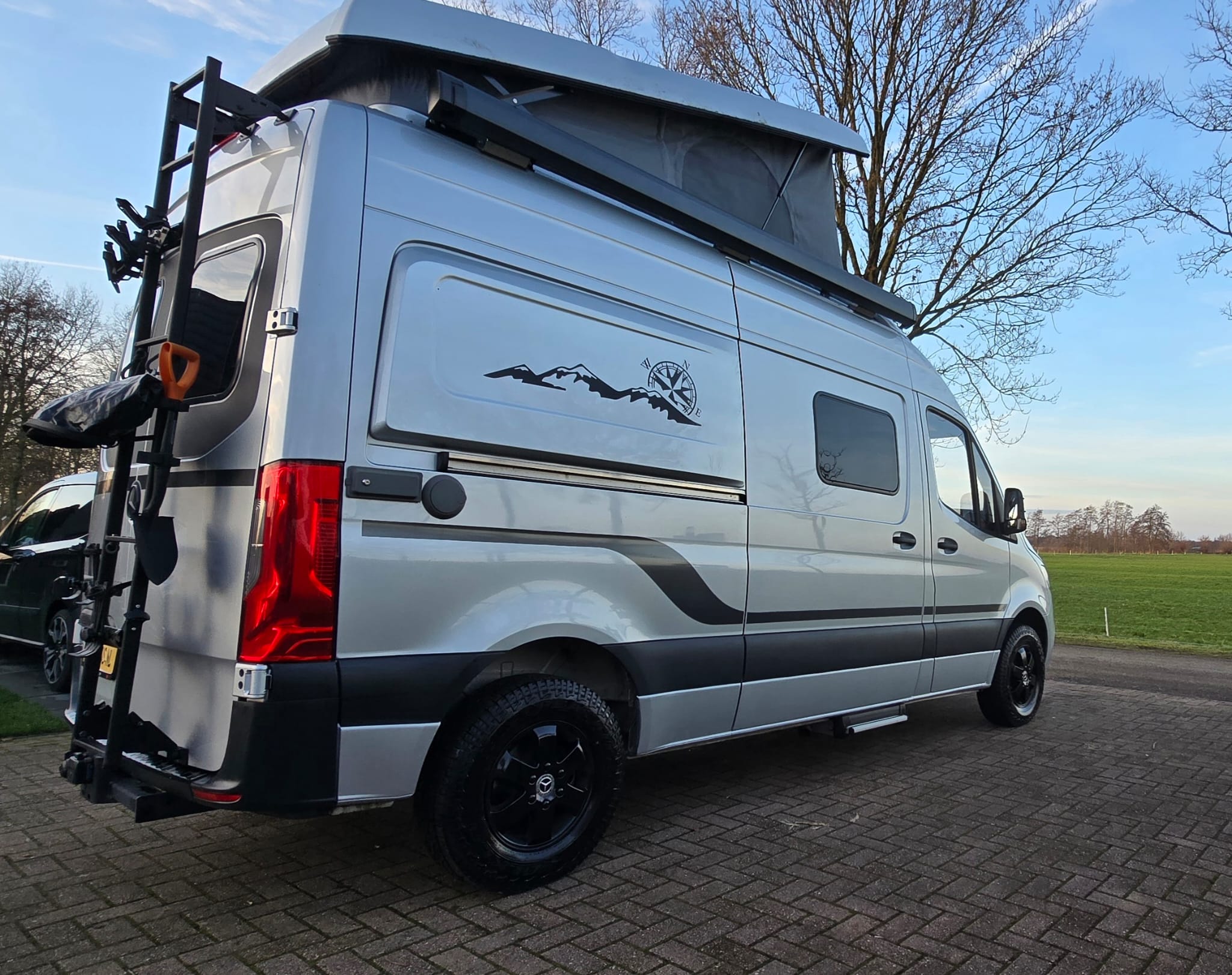 Uitgevoerd met heel veel extra’s die deze buscamper een unieke uitstraling geven. Wat dacht je van zandplaten, verstraler LED balk, buitentrap en handige uitschuifrail voor opbergboxen. Op de achterdeuren de mogelijkheid om 2 fietsen verticaal mee te nemen. Praktisch en stoer tegelijk! Deze Mercedes Sprinter biedt een stevige basis met 9G automaat en luchtvering op de achteras. Dankzij de 2 zonnepanelen én de 2 lithium boardaccu’s kun je zelfvoorzienend off-grid camperen. Nieuwsgierig? Maak dan een afspraak voor een vrijblijvende bezichtiging.