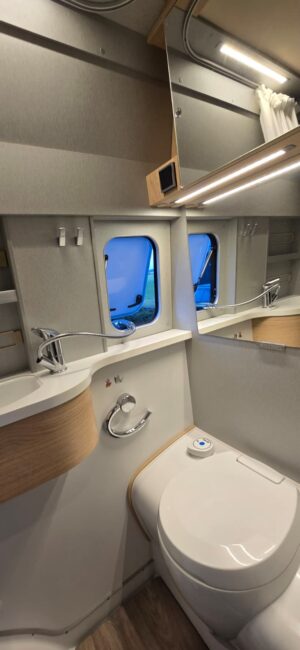 - Toilet met SOG en douche (met raam zodat de doucheslang ook als buitendouche gebruikt kan worden)