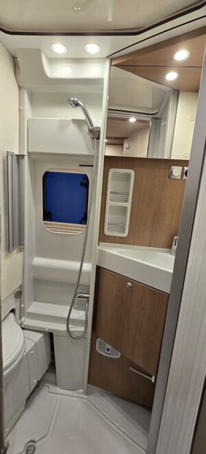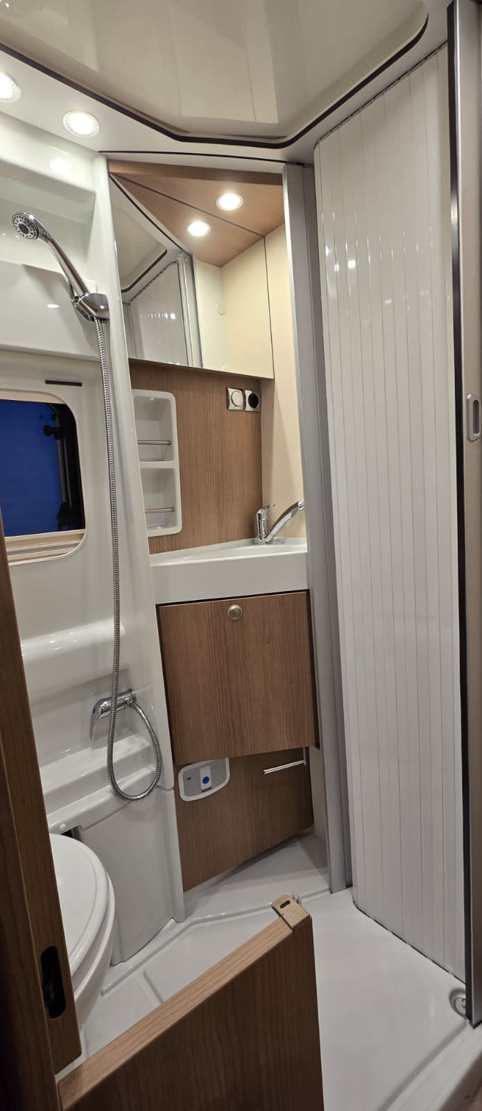 - Douche en wegdraaibaar toilet (met zijraam!)